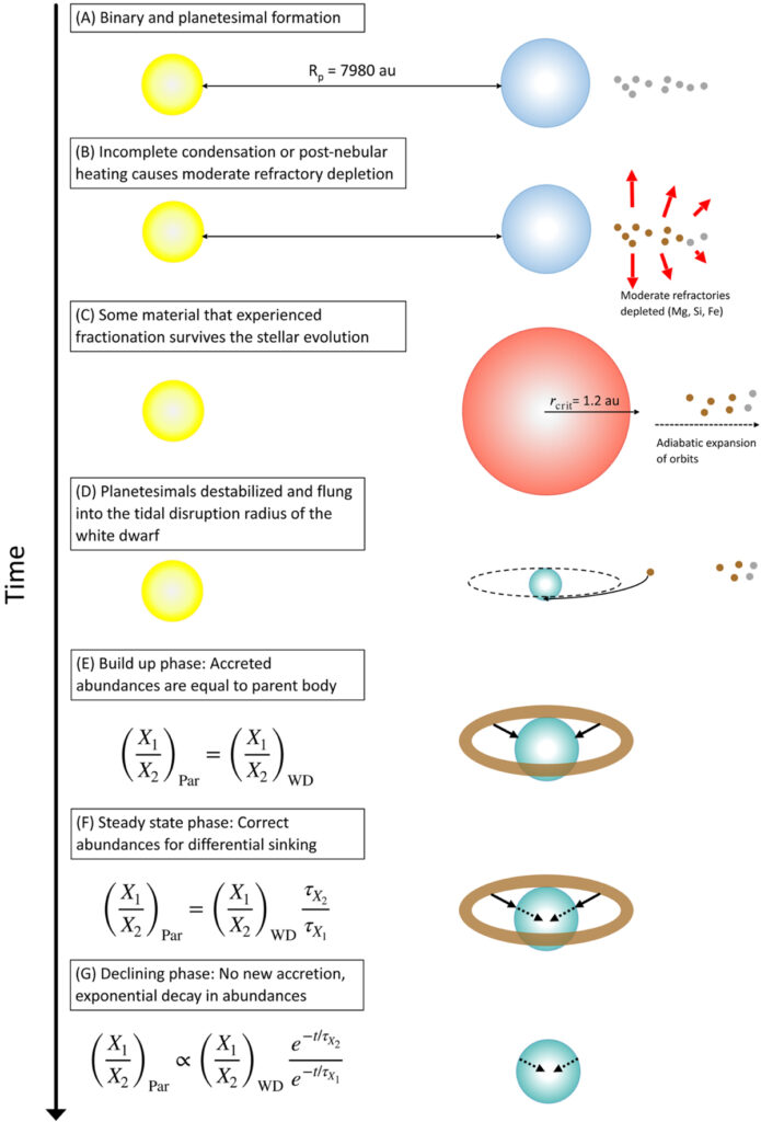 Our results from comparing planetary material to the composition of its natal cloud reveal that the planetary material is depleted in moderate refractories (Mg, Si, and Fe) relative to the refractory material (Ca, Ti). Grouping elements based on their condensation temperatures is key to linking stellar and planetary compositions. Fractionation during formation or subsequent planetary evolution leads to the depletion of moderate refractories from the planetary material accreted by the white dwarf. This signature, as seen for bulk Earth, will likely be present in the composition of many exoplanets relative to their host stars.